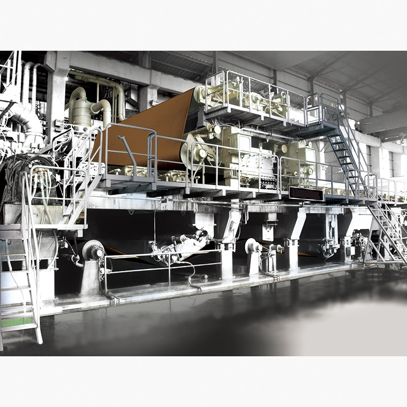 造纸机: 使纸浆形成纸幅的分部联动的全套设备,包括流浆箱、网部、压榨部、烘干部、压光机、卷纸机